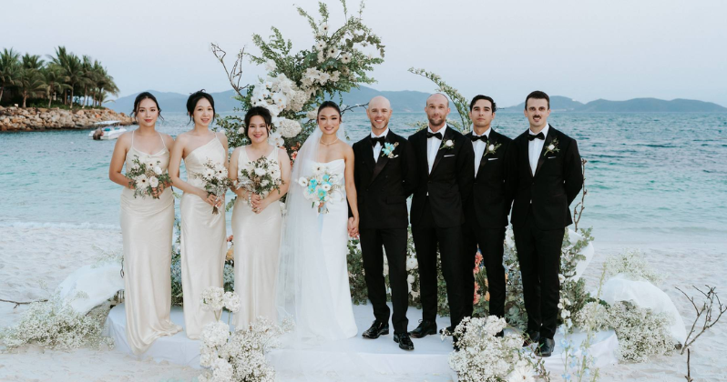 Qua cách Linh và Dương bày tỏ niềm yêu thích với những giá trị truyền thống trang nhã, HyggeLab Concept đã biến tấu không gian Lễ gia tiên của cặp đôi dựa theo bộ tranh thư pháp Tứ Bình kinh điển. Không chỉ thấp thoáng vẻ đẹp Đông Dương, ý tưởng này còn đại diện cho câu thơ đầy ngụ ý tốt lành: “Yểu điệu thục nữ, quân tử hảo cầu”.